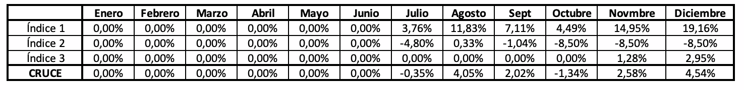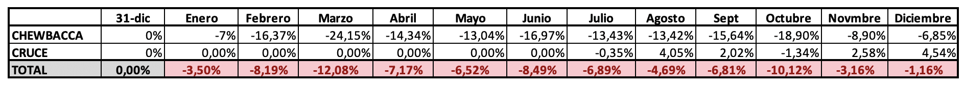 Y esto es la prueba de lo importante que es diversificar. Un año malo de una estrategia nos lo salva un buen año de otra.