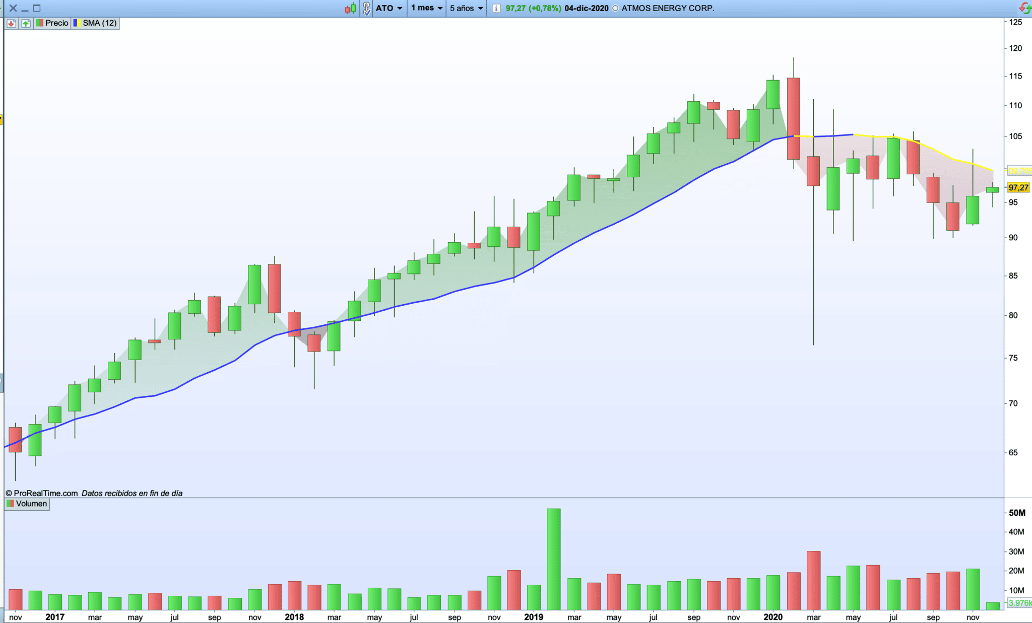 El 30 de Noviembre Vera compró 4 acciones de Atmos a 96,85$. 2,6% y al igual que en el caso de PPG, compramos justo después de la fecha ex-dividend, por lo que hasta 2021 no veremos dividendos de esta compañía.
