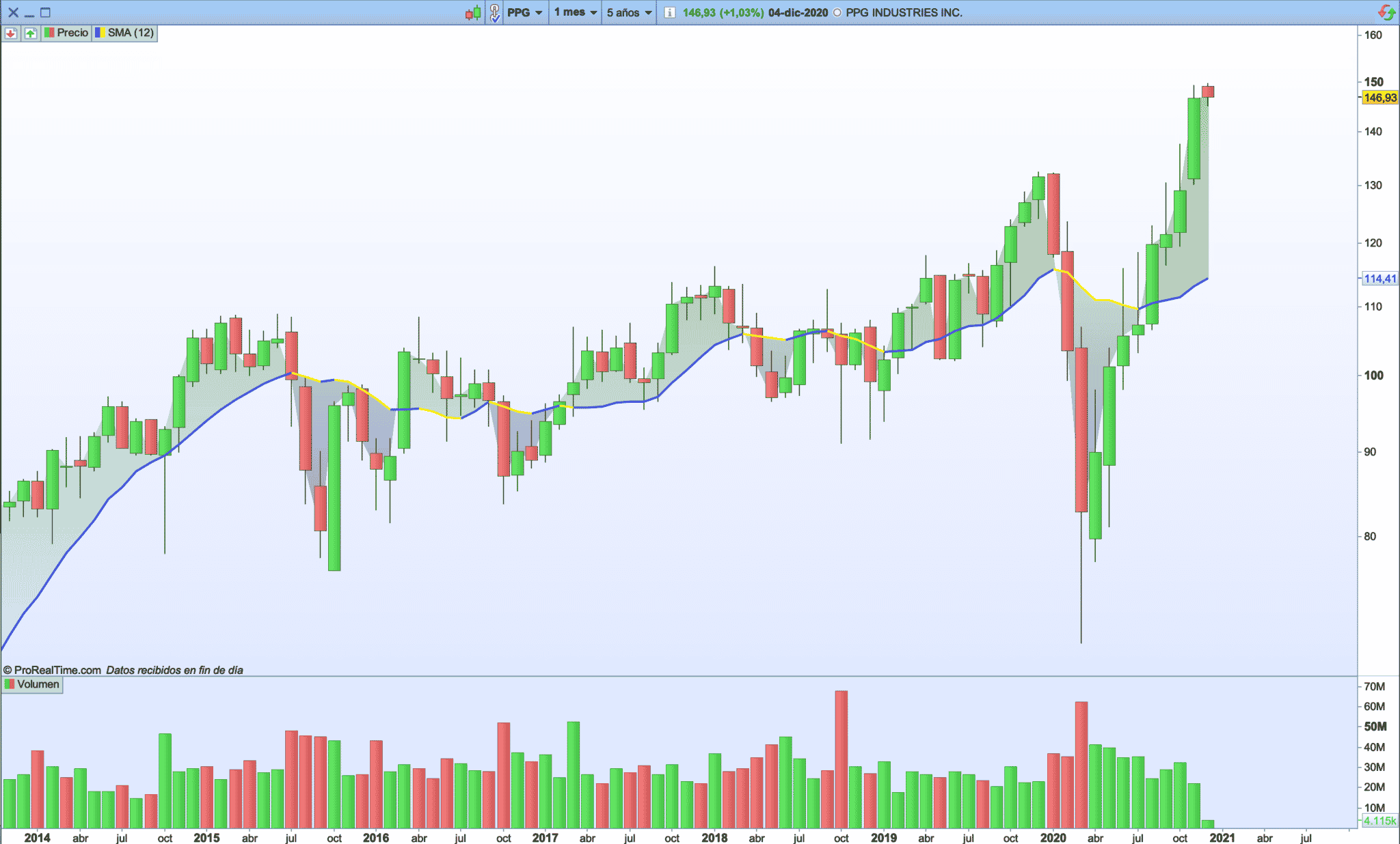 PPG Industries. Una empresa que fabrica pinturas. Ojo. Ni microchips, ni nanotecnología, ni paneles solares ni leches en vinagre. Pinturas. La fabriquita de pinturas lleva 49 años incrementando el dividendo. Ahí es nada, El año que viene rey.